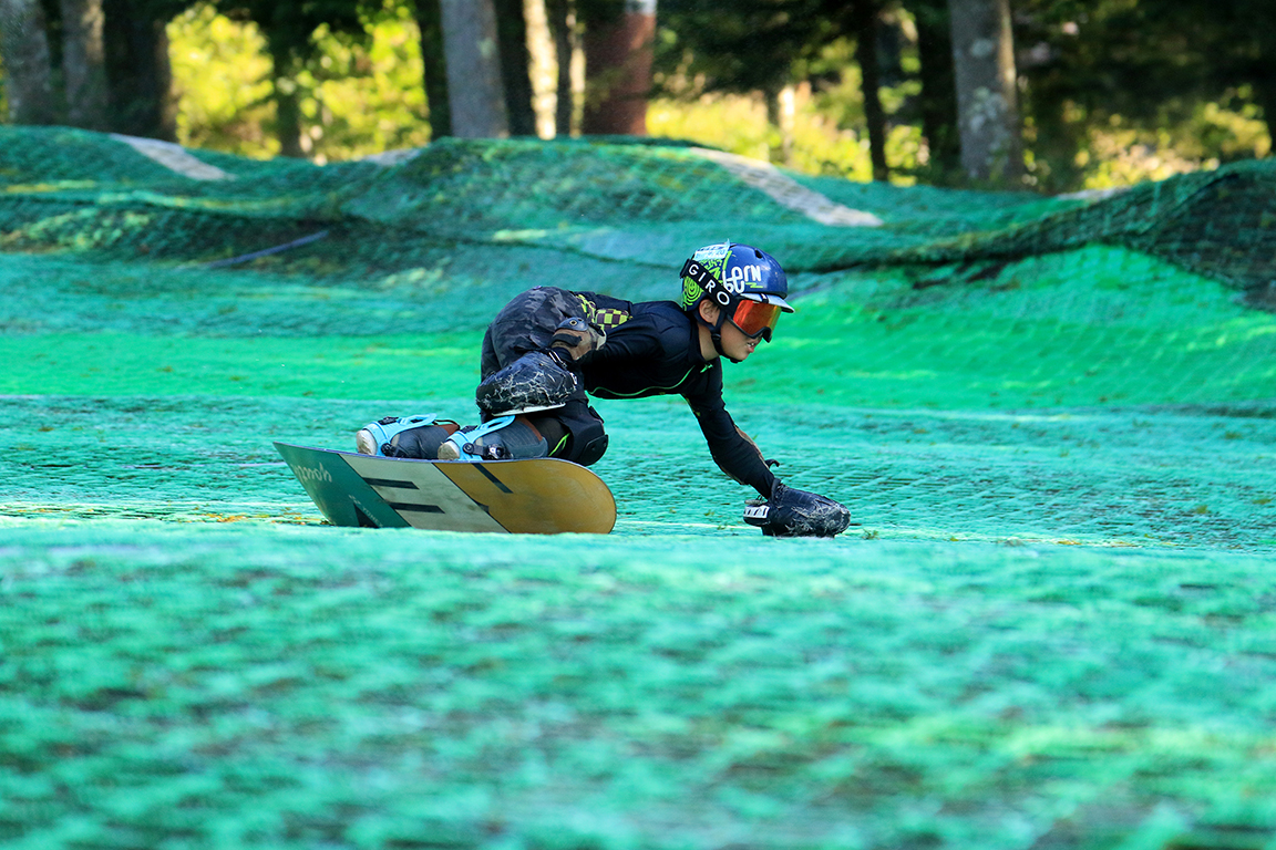 ふじてんリゾートのサマーゲレンデは、「カービングマット」と呼ばれるサマーゲレンデ用に開発した最新のスノーマットを採用。
