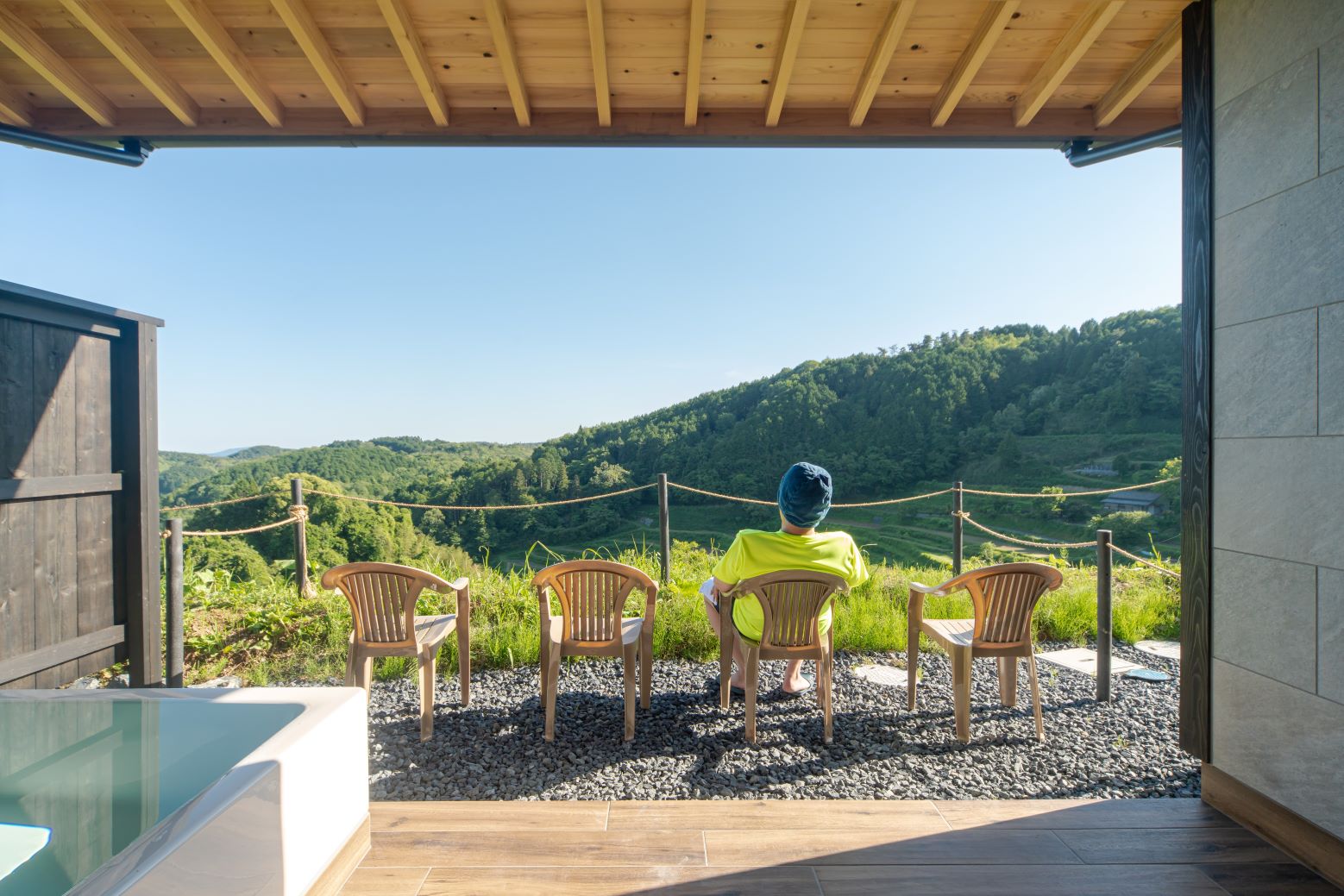 日本棚田百選に選ばれた「上籾棚田」。四季折々にその表情を変化させる絶景を高台から一望できる、一棟貸し切り型の客室露天風呂付宿泊施設併設型サウナ「THE TANADA SAUNA」が7月4日にオープンした。