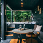 同施設は2タイプのパノラマキャビンを用意。「THE STAGE」(20㎡/定員4名)は、黒を基調としたスタイリッシュなボックス型のキャビン。