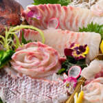 「紅葉鯛」は、産卵を終えた夏にエビやカニなどをたっぷり食べて脂がのった鯛。一年のうちで最も旨いと言われる時期。お刺身や握り鮨や、漁師汁、焼き物などで提供。