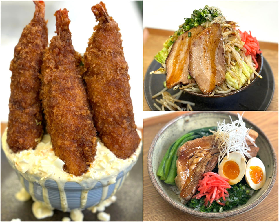 同道の駅内の「よろこび茶食堂」では、食欲の“春”に合わせて「デカ盛りフェア」を開催。背徳感あふれる、春のわんぱくグルメ3品を提供開始。