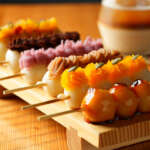 カフェは、大分県別府市で人気の「cafe SHU」の和スイーツの一部を提供。おにぎりや焙煎コーヒーなどのニューも用意。100%かけ流しの足湯を設置し“温泉×カフェ”空間を演出。