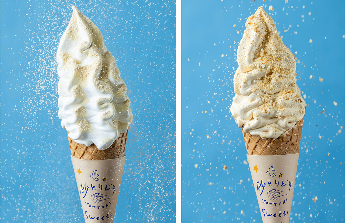 ▲どちらも「砂丘ねばりっこ」が使われている。「砂かけねばりっこソフトミルク」(左)、「砂かけねばりっこソフトキャラメル」(右)。各580円