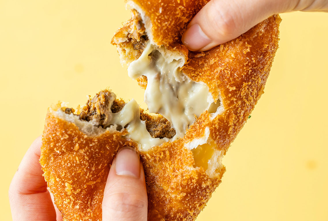 ▲カレールウの年間消費量が日本でトップクラスの鳥取県だけに「のびる! ねばりっこチーズカレーパン」(480円)なる軽食も