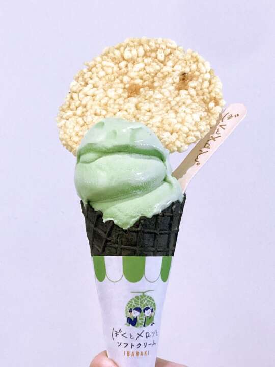 「ぼくとメロンとソフトクリーム」からは、「おこメロンソフト」(500円)が新登場。メロンソフトにおこげ煎餅をトッピング。煎餅のほのかな塩味とクリスピーな食感に、メロンソフトの華やかな甘さが奇跡のマリアージュ。