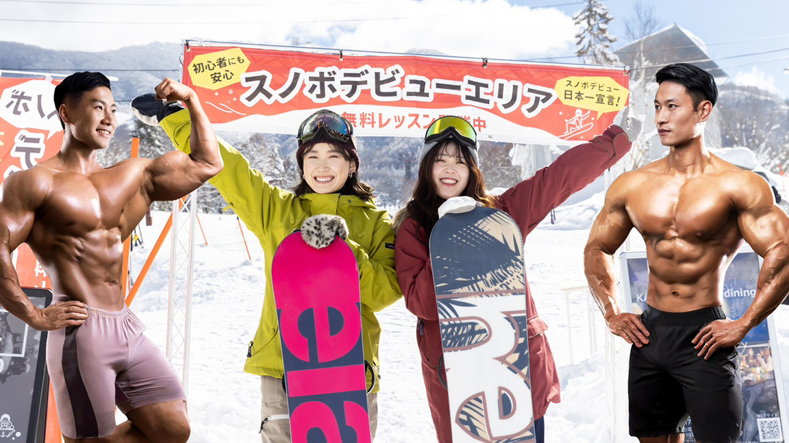 ゲレンデの雪も溶けんとばかりに、アツすぎる筋肉が大集合! 長野県下高井郡山ノ内町の竜王スキーパークで、2024年3月3日、「スノーボード×マッスル」をコンセプトにしたイベント『マッスル スノー パーティ』が開催される。