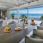 広さは屋内170平米、テラス120平米と余裕たっぷり。リビングダイニングに面した大きな窓からは材木座の海が一望できる。