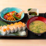 メニューは、寿司メニューが元祖キンメ棒寿司定食(1780円)、握り定食 海街-まりんたうん-(1780円)、伊豆まるす握り定食10貫(2480円)、伊豆まるす握り定食上13貫(3280円)等。