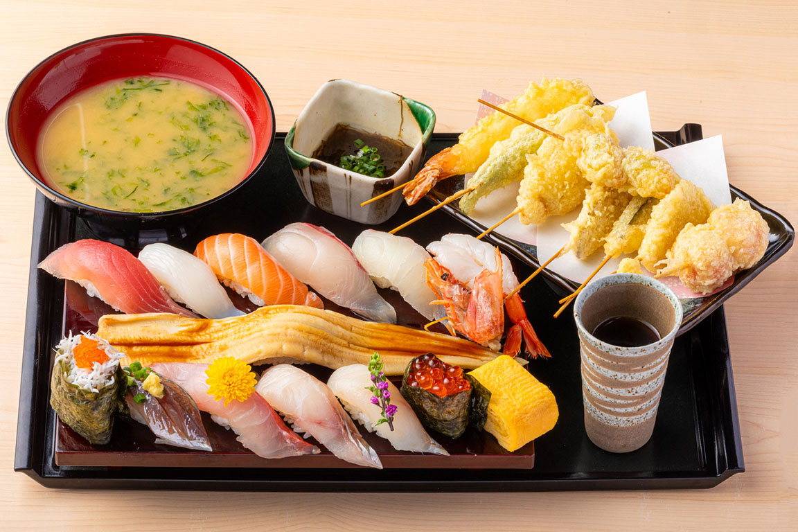 ▲まるす上握り(3280円)+串天ぷら8本(980円)