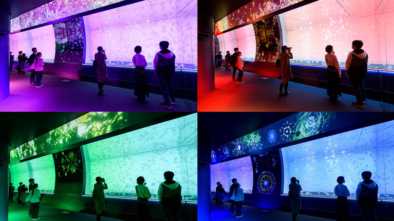 光と音を感じられるプロジェクションマッピングや、香りによる空間演出により「春夏秋冬をめぐるミズクラゲのライフサイクル」を表現している。ふわふわと漂うクラゲたちの幻想的な「美しき新世海」をぜひ体感したい。