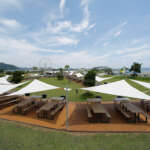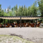 名古屋から40分、一宮市の冨田山公園内にあり、木曽川沿いの豊かな自然を満喫できる。BBQは全12サイトで料金は4300円~/人。全席屋根付きで雨でも予定が崩れず安心。おすすめはソファ席。予約必須の人気席だ。場所:愛知県一宮市冨田砂原2120-1。