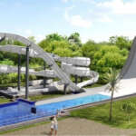 「ウルトラブーメラン」は全長約63mのウォータースライダー。浮輪に乗って、ブーメランのような軌道で上昇、降下を体験できる。
