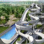 「スーパースネーク」は、全長約62m、地上2階ほどの高さから緩やかなカーブで滑り降りるウォータースライダー。