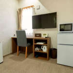 その他、無料Wi-Fiやエアコン、テレビ、冷蔵庫、電子レンジ、加湿空気清浄機、ドライヤー、電気ケトルを各部屋に用意。食事の持ち込みも可能だ。