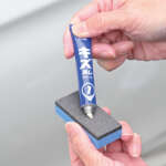 ①付属の青いスポンジにキズ消しクリームを少量取る