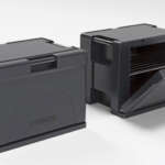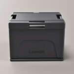 オフィス機器を思わせる黒くスクエアで高級感のあるボディは、ヨコ面をパカッと開けるとクーラーボックス内にアクセスできる構造。
