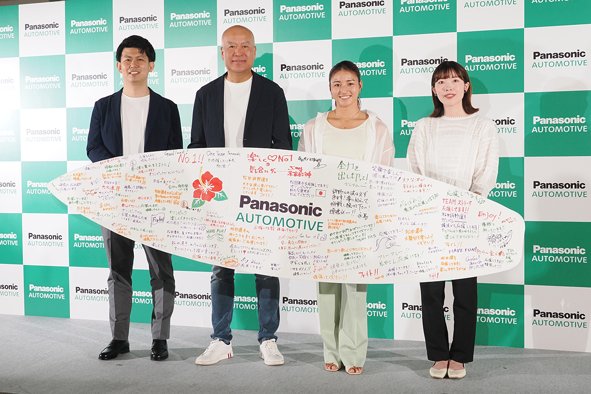 ▲応援コメントが手書きされたサーフボード型のメッセージボードが贈られた