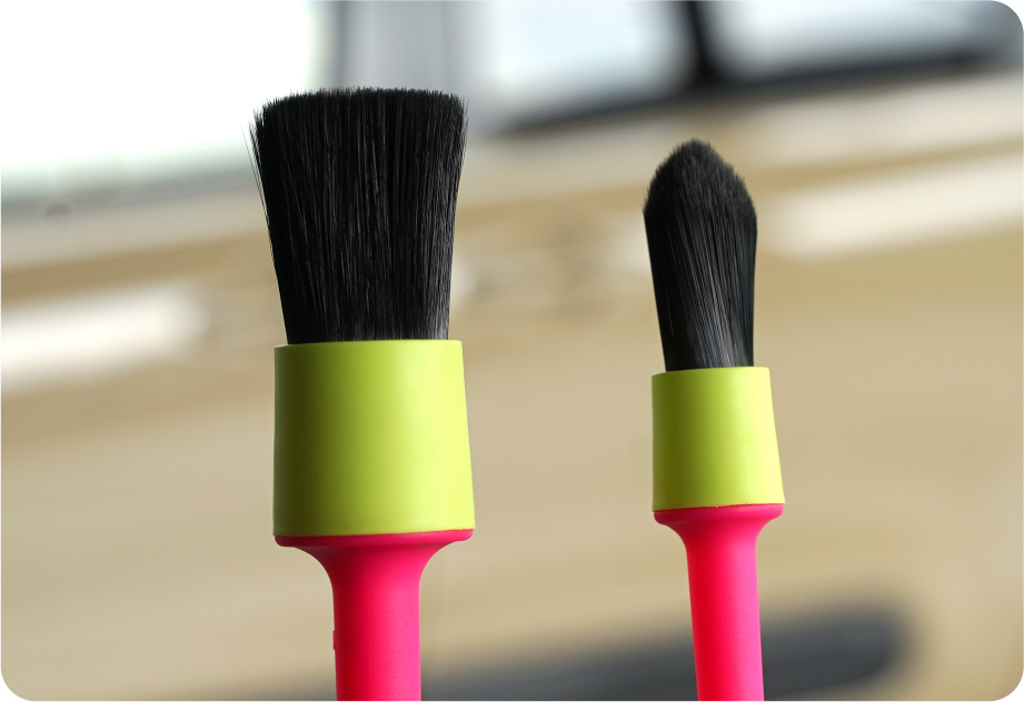 ▲場所によって使い分けられるワイドヘッド(左)とスリムヘッド(右)の2本セット