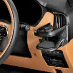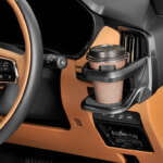 両車の車両前席に見られる太い張り(R)と直線による力強いデザインに、自然につながるホルダーデザインで、可能な限り内装カラーと近づくよう調色のうえシボ加工を施した。ウインカー操作時などに干渉しないようコンパクト化も実現した。
