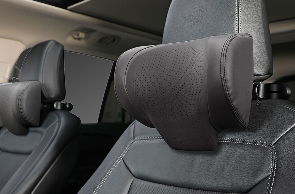 同モデルは、上下前後の4方向調整機能と首に合わせたU字カーブ設計で首にピッタリとフィット。身長差がある人が交代で運転しても、簡単に位置調整できるのが利点。