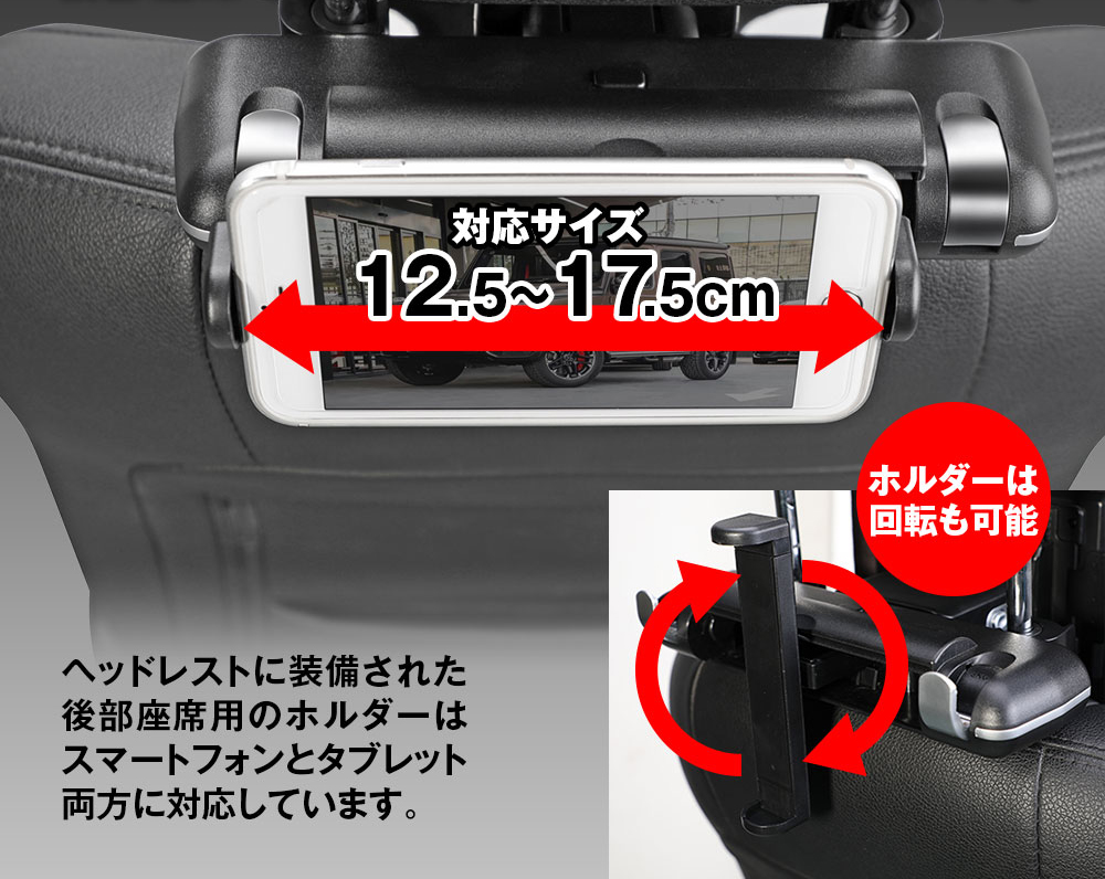 ▲後席用スマホ、タブレットホルダー付き