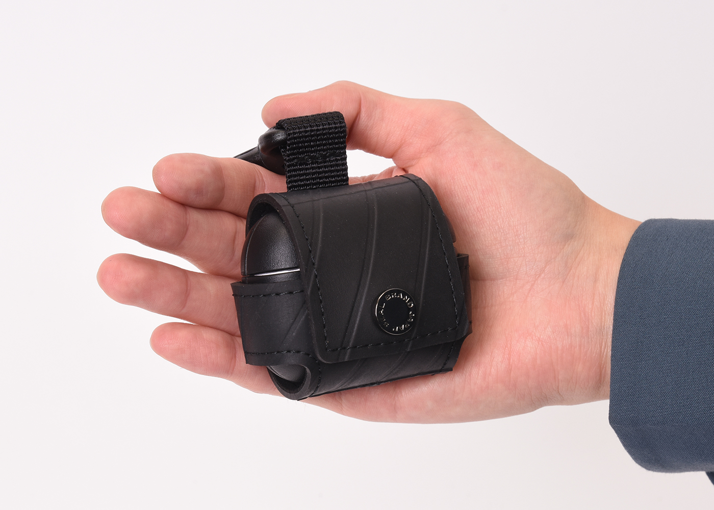 第一・第二世代対応の「AirPods proケース」は、廃タイヤ素材(チューブ)を再利用して作ったホルダーに、本革のケースを付属した保護ケース。