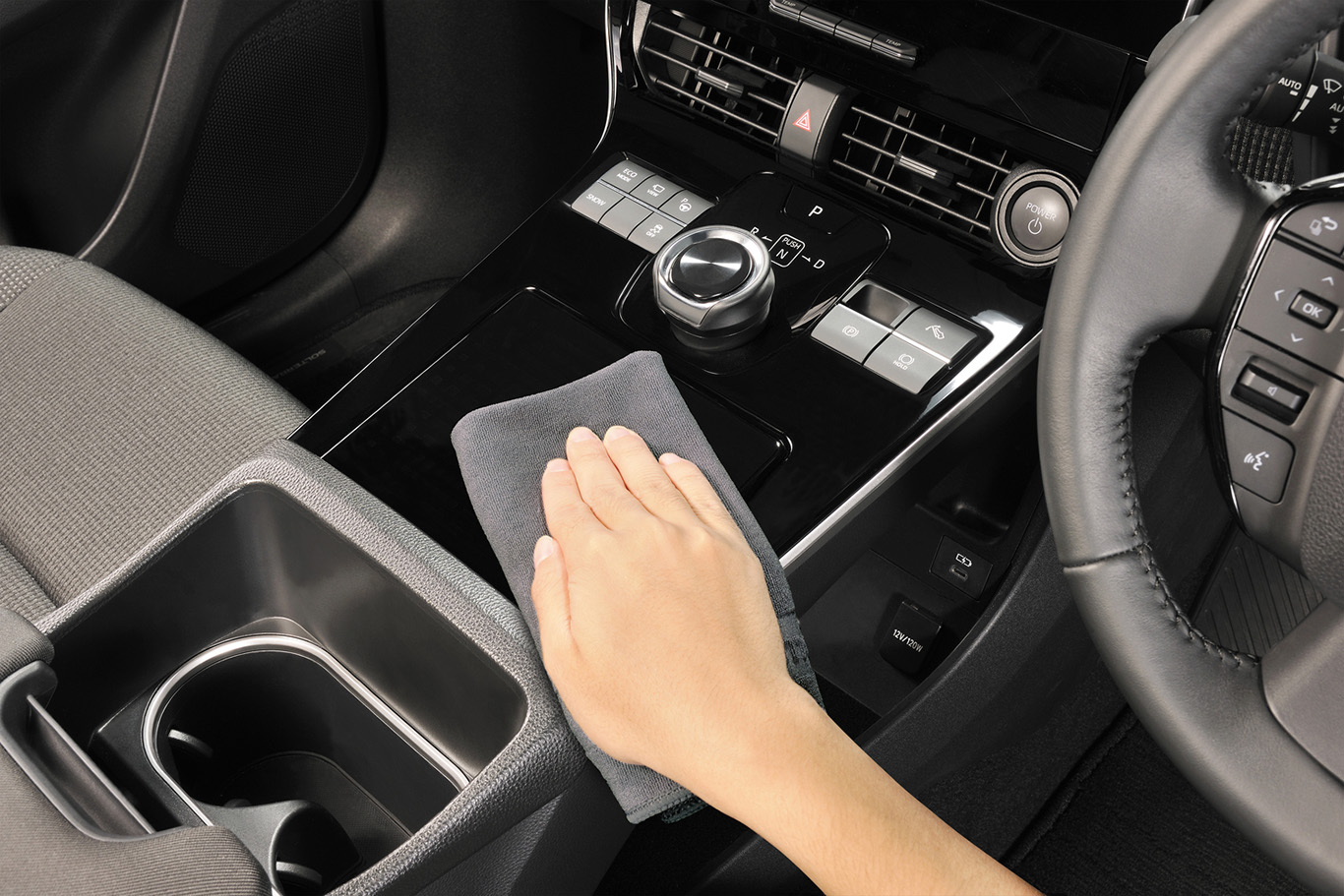 上級車種を中心に最近は黒いツヤのあるパネルが内装材に多く使われている。じつはコレ、シックで高級感があり、見た目は抜群に良いのだがホコリや指紋が目立ちやすい。雑巾などで乾拭きをすると細かい傷が無数についてせっかくのツヤが曇ってしまう…。