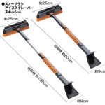 フロントガラスなどの雪がガチガチに氷結している部分は、アイススクレーパーの出番。ガリガリ削った後は、スノーブラシの背面に装備されたスキージで、ワイパーが雨を払うように拭き落とせる。