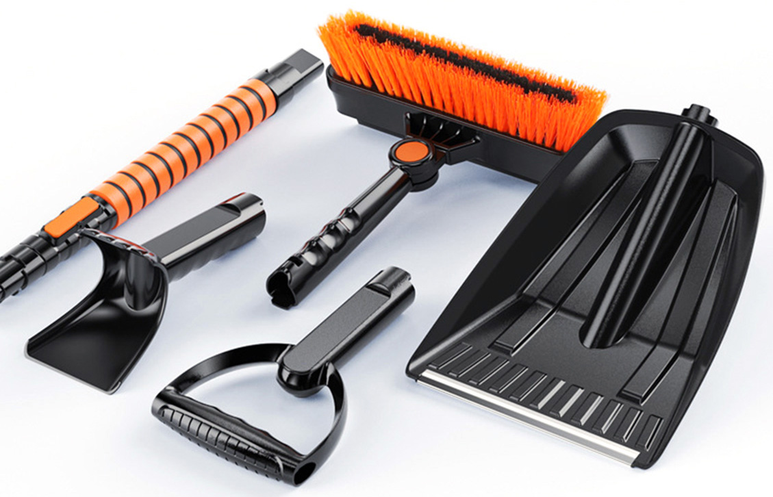 • クルマのボディや窓ガラスの除雪からシャベルまで1本で4役もこなせるスノーブラシセット