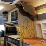 家族の思い出を作るキャンピングカーだからこそ、親と子・家族描く「ライオン・キング」がテーマに選ばれ、車内の随所にライオン・キングのキャラクターをモチーフとしたカラーやデザインが施されている。
