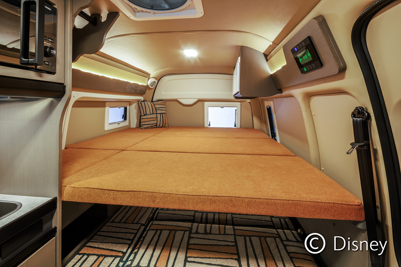 ▲リヤベッドは太陽の光を浴びた大地を表現したオレンジ