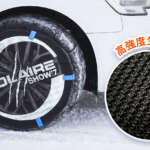 強さの秘密は高耐久性の特殊な生地。雪上走行に必要な「走る・曲がる・止まる」について安定した走行性能を実現し、氷の上での安心・快適なドライブを提供する。