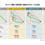 しかもガソリン価格の安い順、1位から3位それぞれに立ち寄るルートを比較して選ぶことが可能だ。