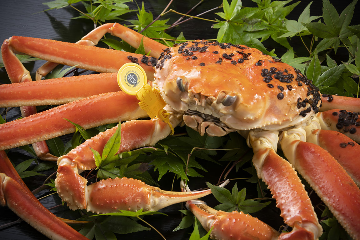 冬の味覚の主役といえばやっぱりズワイガニ。なかでも『越前がに』は、甘くひきしまった肉質と芳醇なコクの蟹味噌がギッシリ詰まり、まさに王者の風格。福井県内の港で水揚げされたものに付けられる黄色いタグが品質の象徴だ。