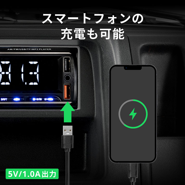 ▲下側のUSBポートはモバイル機器の充電に使用できる