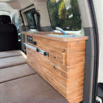 さらに引き出し式のコンロを装備したキャビネットやコンパクトに格納できるシンクとシャワーを装備しており、アウトドア等でのシンクやコンロの使用だけなく、特殊用途自動車(8ナンバー)としての登録となる。