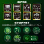 除塵シート層は花粉やホコリ、PM2.5、カビの胞子、黄砂、ダニなどの粒子をキャッチ。そして活性炭層は悪臭全般、タバコ臭、ペット臭、排ガス臭などの悪臭にも対応。