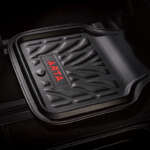 ▲「ARTA トレッド トレイ フロアマット カーボン調 Mサイズ」(フロント、ブラック/レッド・2480円)