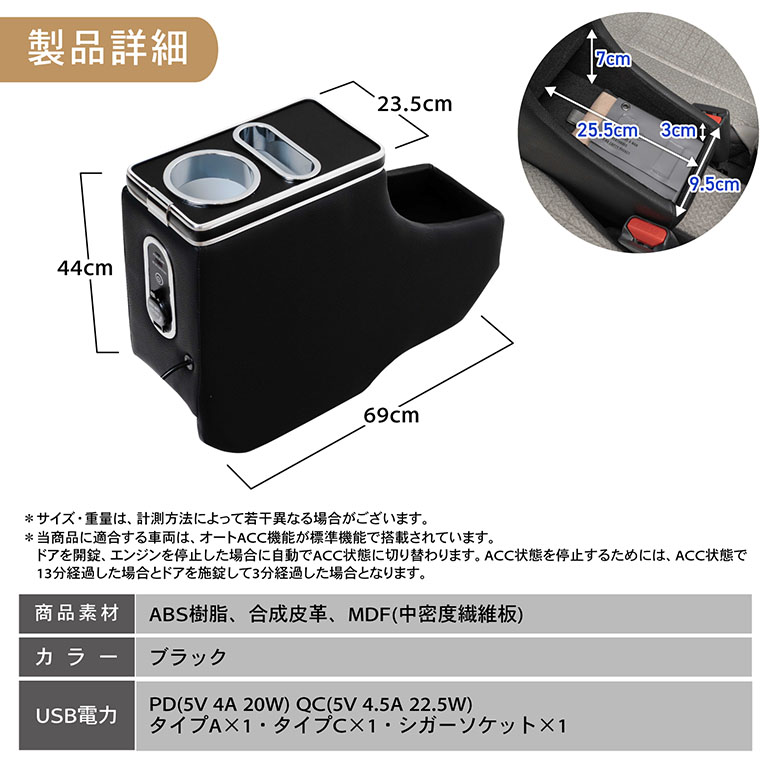 ▲デリカミニ/eKスペース/ルークス専用LEDアームレスト/コンソールボックス