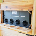 標準装備のクーラーは、200Ahのリチウムイオンバッテリーと組み合わせ、エンジン停止状態でも使用可能。真夏の夜でも快適に車中泊でき、アイドリング不要で周囲に迷惑をかけない。