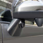 助手席側ドアミラーの根元部分に純正品のようなスマートな装着ができ、カメラ映像はドライバーから死角となる左フロントタイヤ付近の状況を映し出す。