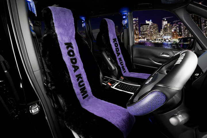 ▲もふもふシートカバー 1枚入り DKK014-01-01(1万1100円)。ネーミングのとおり“もふもふ”手触りが心地よい汎用タイプのシートカバー。インテリアのイメージをがらりと変えるインパクト