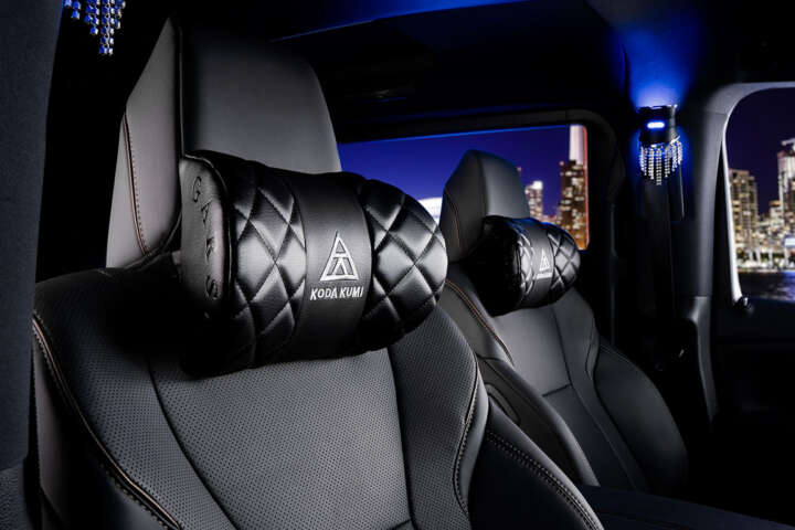 ▲ネックヘッドパッド DKK010-01-01(6800円)。首をしっかりと支えるネックパッドはロングドライブ等での疲れを軽減。レザータイプの高級感あふれる仕上げとなっている