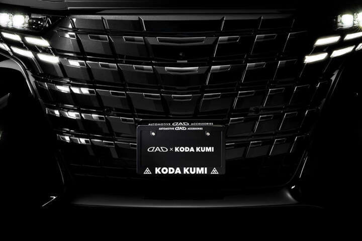 ▲ナンバーフレーム DKK011-01-01(5000円)。フロントナンバープレートに組み合わせて装着。「KODA KUMI」のロゴが愛車の顔つきにインパクトを与える