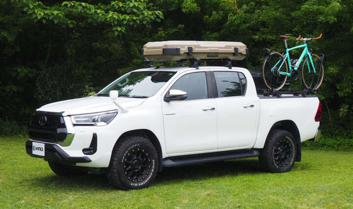 ▲ハイラックスに装着。白いボディカラーにマットベージュが映える