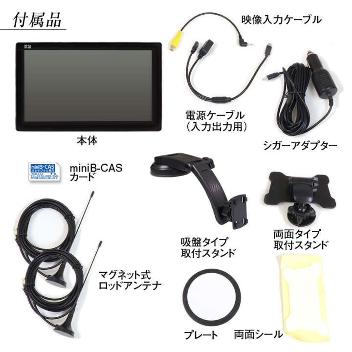電源はアクセサリーソケットから取得し、地デジ用の2本のロッドアンテナはマグネット仕様となっている。
