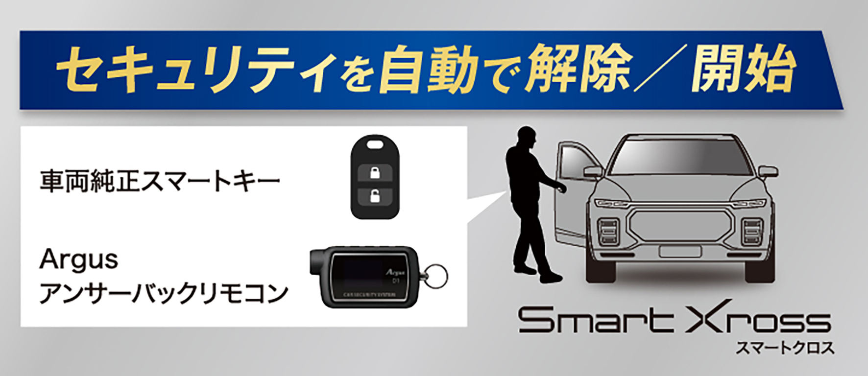 ▲車両キーと一緒にArgus D1リモコンを持っていればセキュリティ開始/解除を自動で行える「Smart Xross(スマートクロス)」を採用