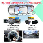 録画解像度:360°(車内カメラ1920×1920、リアカメラ1920×1080)