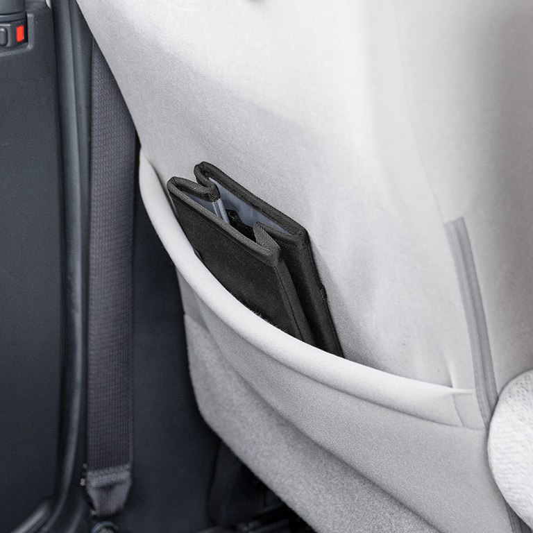 ▲使わないときには折りたたんでシートバックポケットにスッポリ納まる