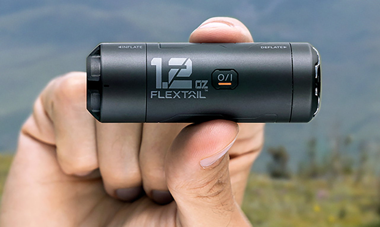 重量は約33g(電池込み:約49g)、サイズは2.6φ×7.5cm。指先でつまんでエアマットのエアを充填・解放できる、超小型のエアポンプ、FLEXTAIL(フレックステイル)の『ZERO PUMP(ゼロポンプ)』が誕生。